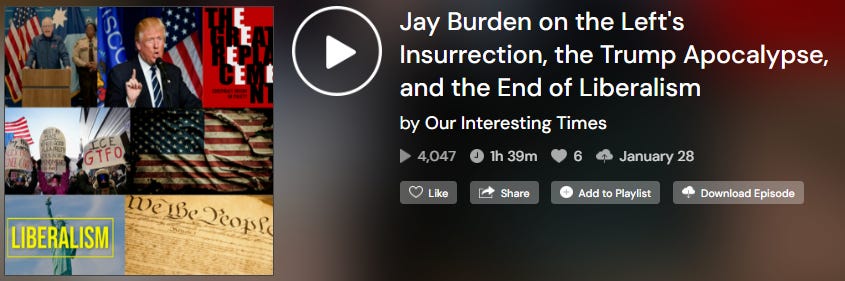 Our Interesting Times had J. Burden on to discuss Minnesota, immigration, the Trump apocalypse, and the apparent death of liberalism.
